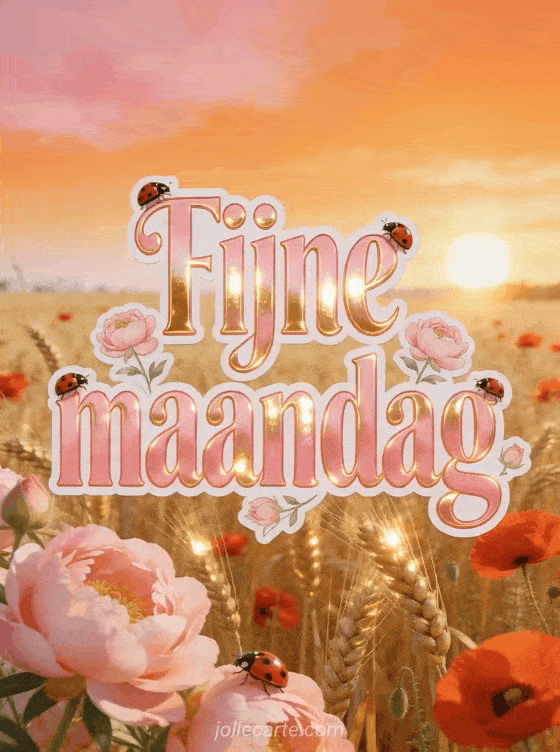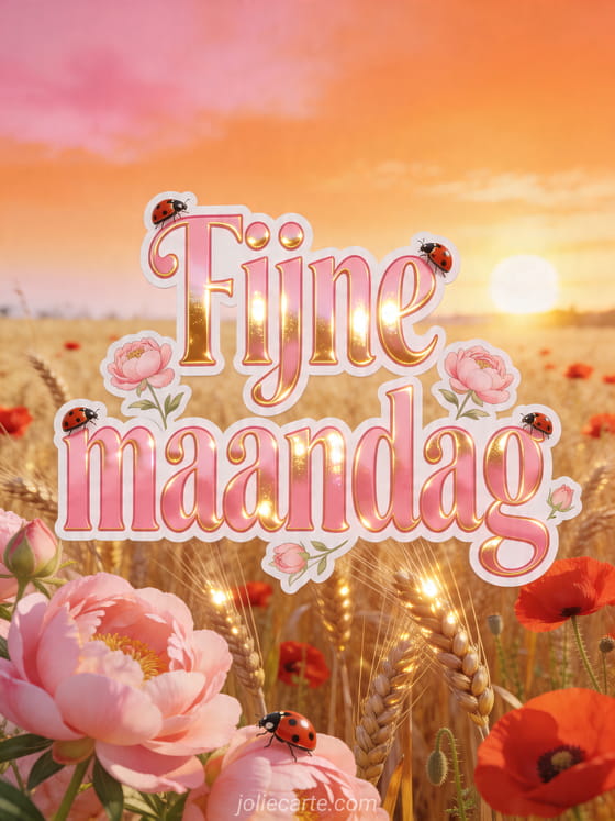 Deel een warme Fijne maandag groet met goudkleurig graan, rode klaprozen, roze pioenrozen en charmante lieveheersbeestjes. Bekijk ook fijne dag maandag kaart, fijne maandag en goede week citaat bericht en virtuele fijne maandag kaart.