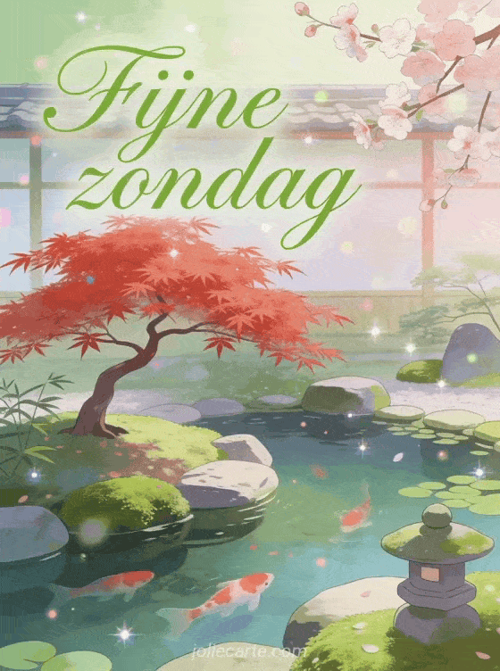 afbeelding van fijne zondag een serene zondaggroet in een Japanse tuin