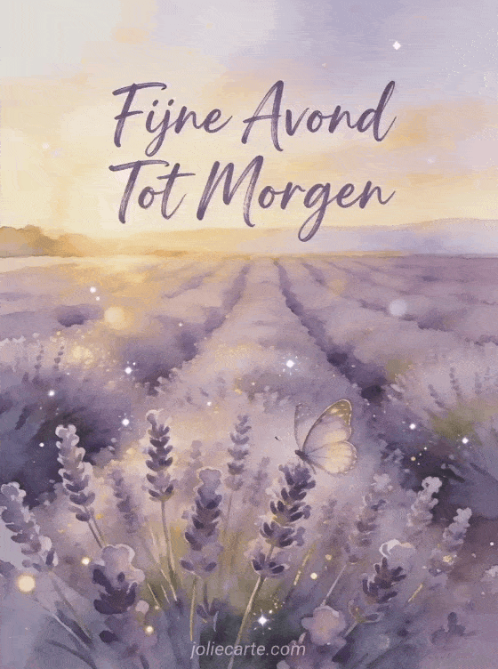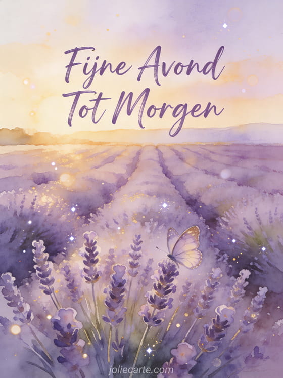 Stuur een vredige goedenavondgroet met deze prachtige afbeelding van een lavendelveld in het gouden avondlicht. Bekijk ook een tot morgen fijne avond kusjes of een fijne avond tot morgen kusjes.