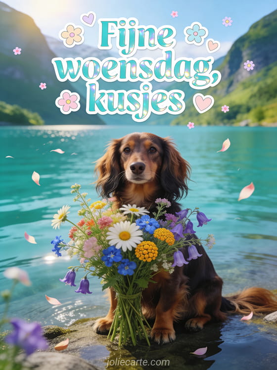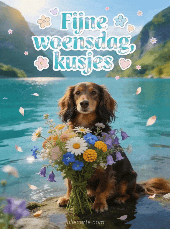 Afbeeldingen kusjes woensdag tedere woensdagse afbeeldingen met kusjes en een schattige teckel bij een fjord