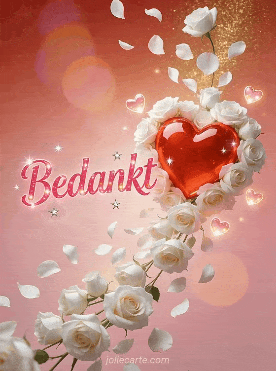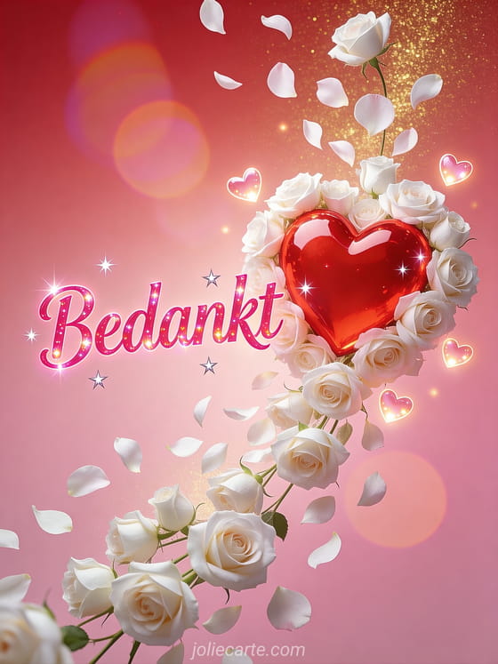 Stuur een stralend bedankje met rozen en een groot glanzend hart vol liefde en dankbaarheid. Bekijk ook een je bedanken of een afbeelding puppy bedankt.