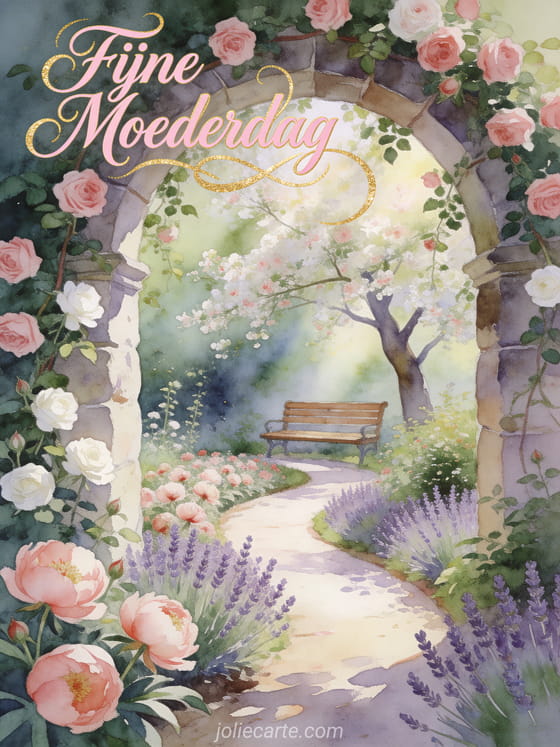 Vier Moederdag met een poëtische aquareltuin vol charme en tederheid. Bekijk ook liefdesgedicht voor moederdag, bedankkaart moederdag en mooie moederdag.