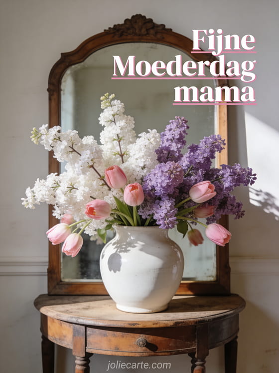 gratis moederdagkaart met sering en tulpen