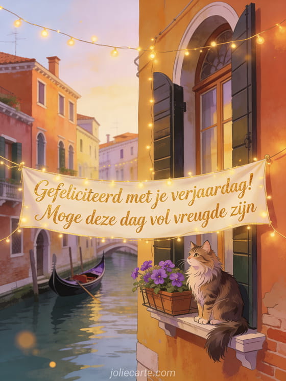 Deel een elegante verjaardagswens met deze romantische kaart vol Venetiaanse charme. Bekijk ook gefeliciteerd met je verjaardag chocolade, gefeliciteerd met je verjaardag strand zon of gefeliciteerd met je verjaardag vol geluk.