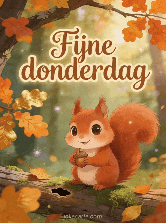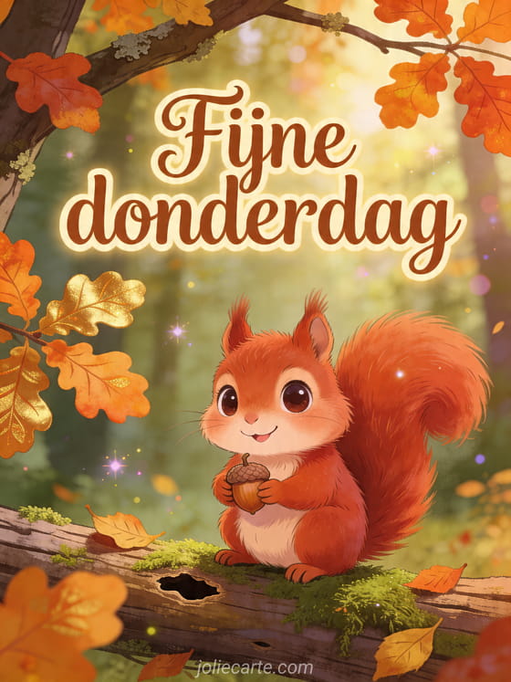 Stuur een vrolijke fijne donderdag-groet met deze schattige eekhoornkaart vol herfstcharme. Ontdek ook gif goedemorgen het is donderdag, kaart fijne zonnige donderdag of bericht om een fijne donderdag te wensen.