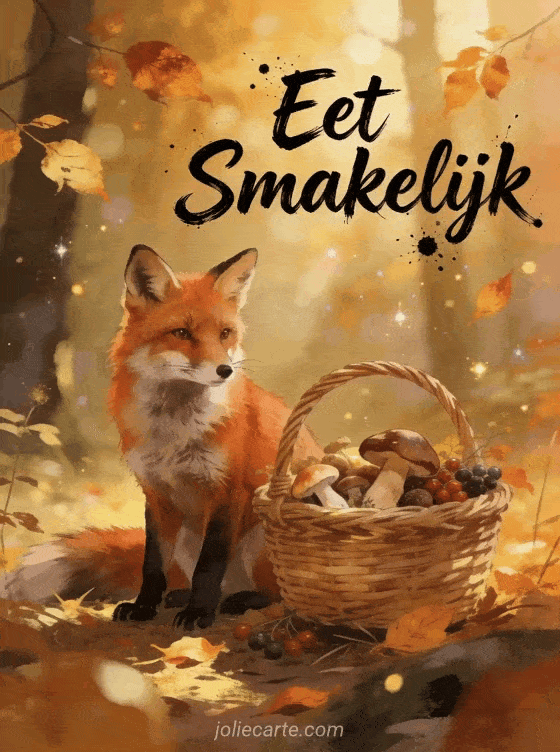 Wens iemand eet smakelijk met deze warme herfstkaart. Ontdek ook een kaart eet smakelijk ski of een kaart eet smakelijk of smakelijk eten.