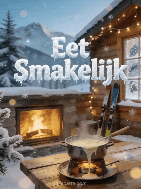 Wens iemand eet smakelijk tijdens de ski met deze gratis kaart. Ontdek ook een kaart eet smakelijk of smakelijk eten of een kaart eet smakelijk grappig.