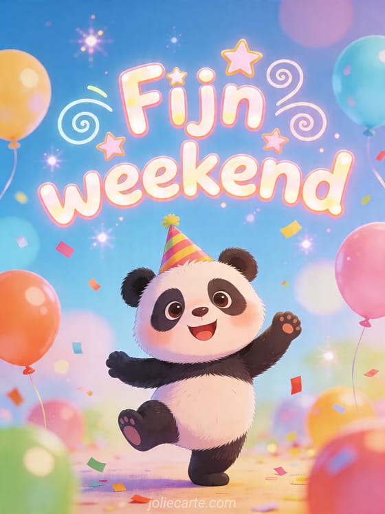 Fijn weekend een vrolijke weekendwens met een dansende panda en feeststemming