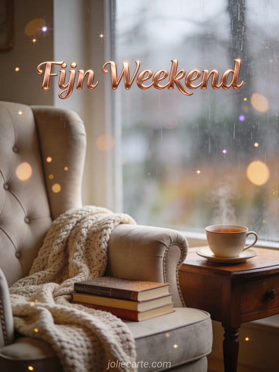 Wens iemand een heerlijk gezellig weekend met deze warme leeshoek-kaart. Ontdek ook een afbeelding fijn weekend zen kaart of een fijn weekend kaart.