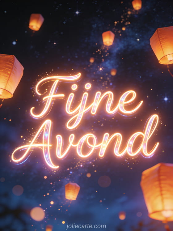 Stuur een magische fijne avond gif afbeelding via deze gratis wenskaart. Magische drijvende lantaarns die opstijgen naar een sterrenhemel, een etherische dromerige sfeer met warme amber en indigo tinten. Bekijk ook een een fijne avond met je geliefde of een fijne avond kusjes vlinder.