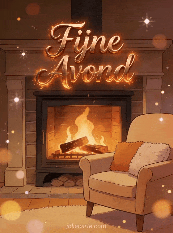 Fijne avond bij de open haard een warme goedenavondwens bij het knapperende haardvuur