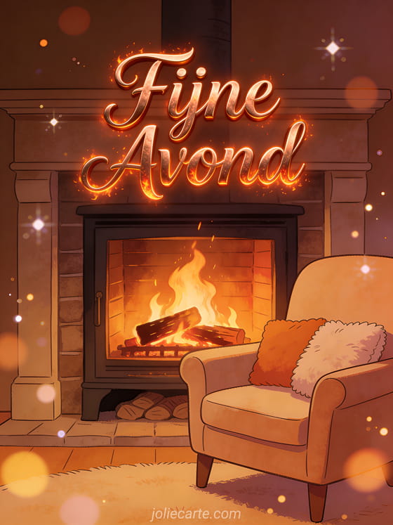 Stuur een gezellige goedenavondwens met de warmte van een open haard. Ontdek ook een tedere fijne avond kaart of een fijne avond kaart met een katje.