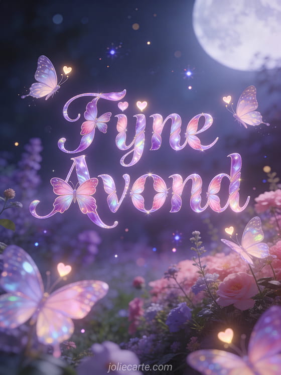 Stuur een betoverende fijne avond kusjes vlinder groet via deze gratis wenskaart. Magische vlinders die kleine hartjes dragen door een maanverlichte tuin, een betoverd tedere sfeer met paarse en roze tinten. Bekijk ook een fijne avond bloemen of een fijne avond boot afbeelding.