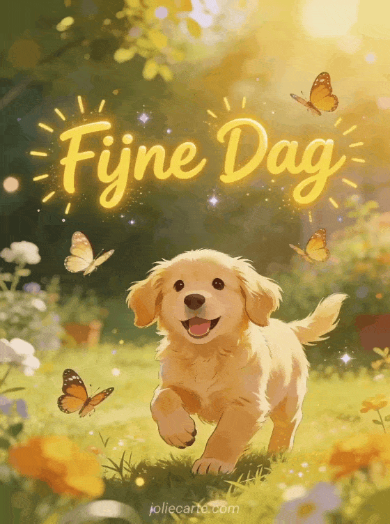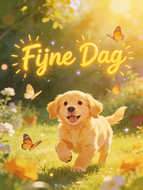 Fijne dag fijne donderdag een vrolijke donderdag-kaart met een energieke golden retriever puppy