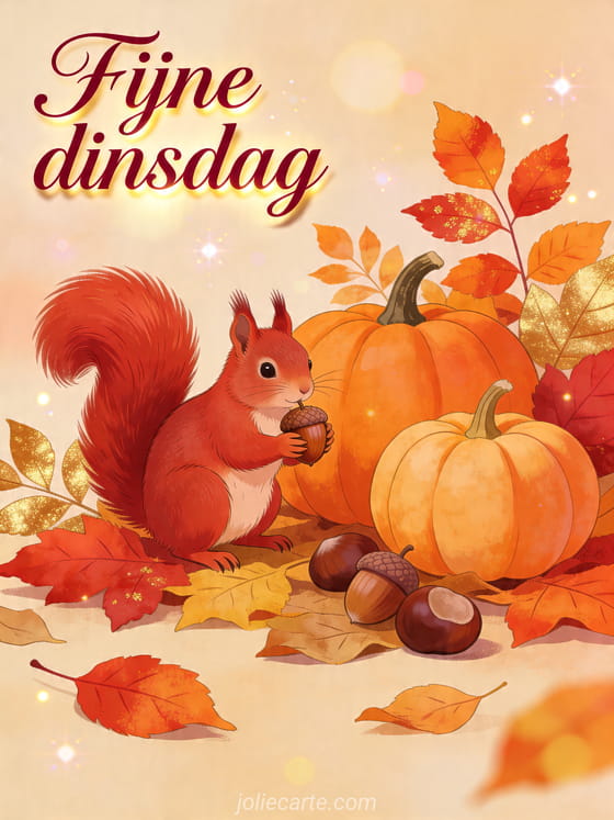 Deel deze fijne dinsdag kaart om een warme herfstboodschap te sturen. Bekijk ook een fijne dinsdag, dinsdag kusjes gifs en mooie kaart fijne dinsdag.