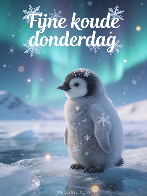 Deel een warme winterknuffel met deze schattige pinguïn donderdaggroet. Ontdek ook een grappige goedemorgen donderdag kaart of een afbeelding fijne donderdag regenachtig.
