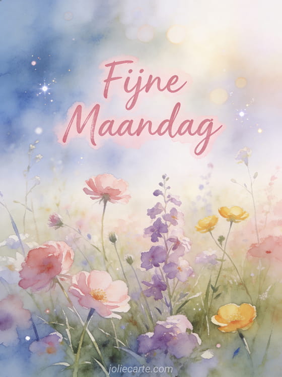 Deel een mooie fijne maandag afbeelding met een dromerige weide en wilde bloemen. Een vredige groet om de week sereen te beginnen. Ontdek ook een kaart fijne maandag humor kusjes of een kaart uitstekende maandag en goede week.