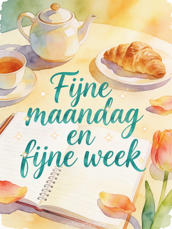 Stuur een vrolijke maandagwens met een gezellige ontbijtscène en een warme groet voor de nieuwe week. Bekijk ook fijne dag maandag afbeeldingen, goedemorgen maandag afbeelding of fijne maandag bloemen afbeelding.