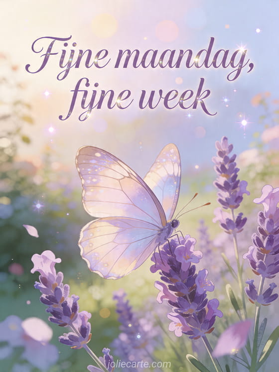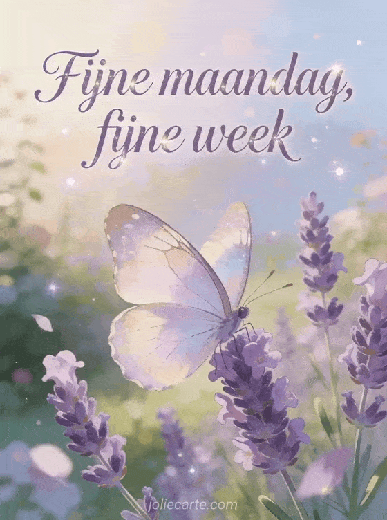 Stuur een mooie maandagkaart met een vlinder op lavendelbloemen om de week rustig te beginnen. Bekijk ook hou vol fijne maandag, mooie fijne maandag afbeelding en het regent fijne maandag in de regen.