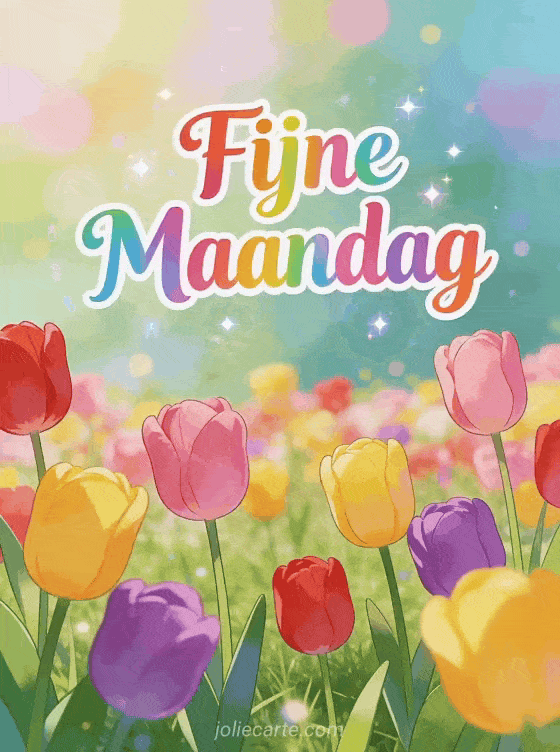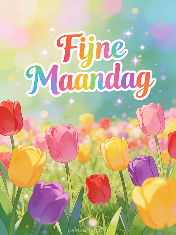 Deel een levendige maandagsgroet met kleurrijke tulpen in volle bloei. Ontdek ook een fijne maandag goede week kusjes of een fijne maandag en goede week humor kaart.