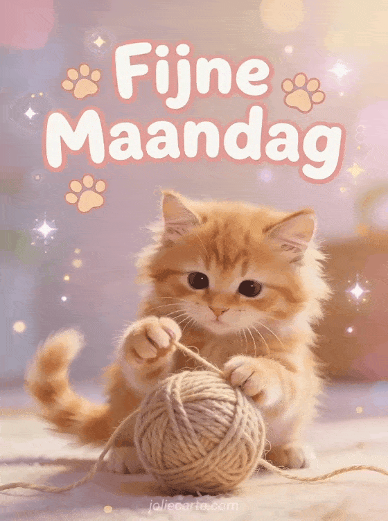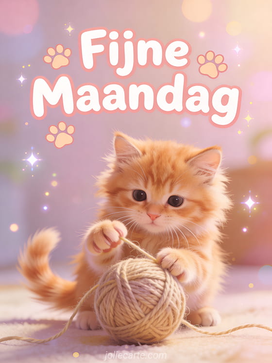 Deel een lieve fijne maandag met kat met een schattig gember-katje dat speelt met een bolletje wol. De perfecte schattige kaart om iemands maandag op te fleuren. Ontdek ook een kaart afbeelding fijne maandag humor of een kaart fijne maandag afbeelding.
