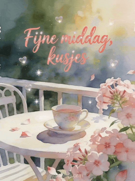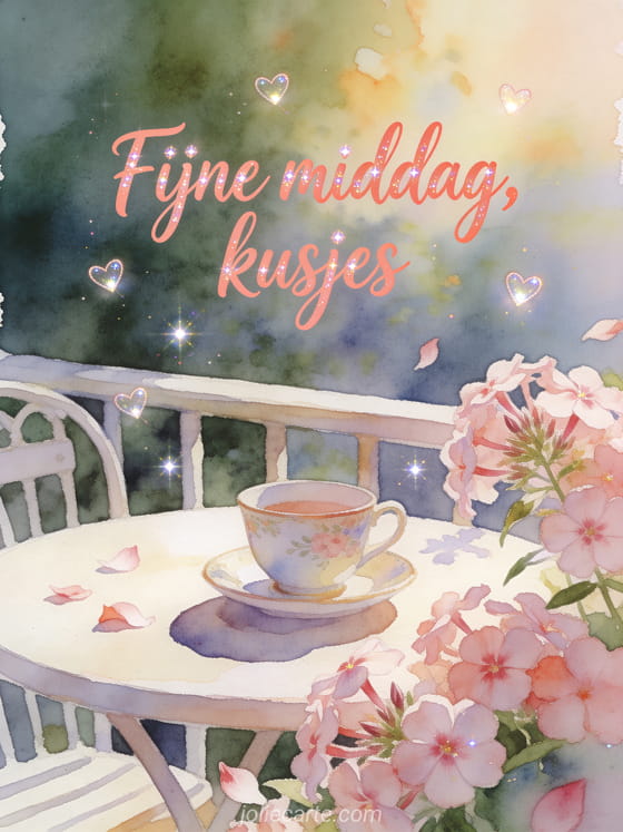 Maak de middag zachter met een aquarelkaart in koraaltinten, vlambloemen en een kopje op een gezellig terras. Je kunt ook namiddag kusjes, een mooie middag kusjes afbeelding of vriendschap fijn einde van de middag kusjes sturen.