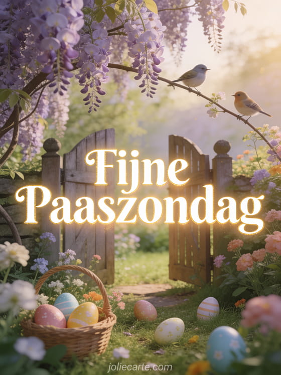 Stuur een mooie kaart voor een fijne paaszondag met een betoverde Engelse tuin vol paasei-jacht. Ontdek ook een paas weekend of een paasweekend.