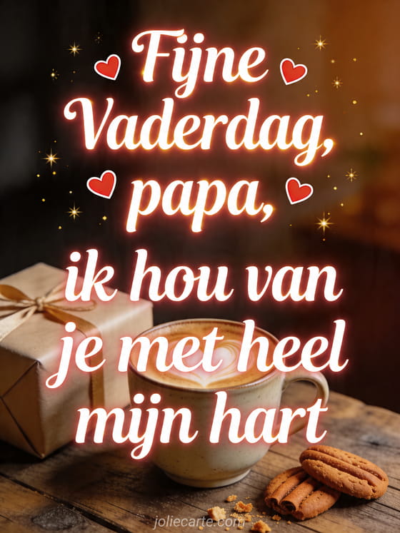 Vertel papa hoeveel je van hem houdt met een warme kaart met koffie, hartvormige latte art, een cadeau en kaneelkoekjes. Je kunt ook fijne Vaderdag, een Vaderdagkaart online of vaderdag bloemen sturen.