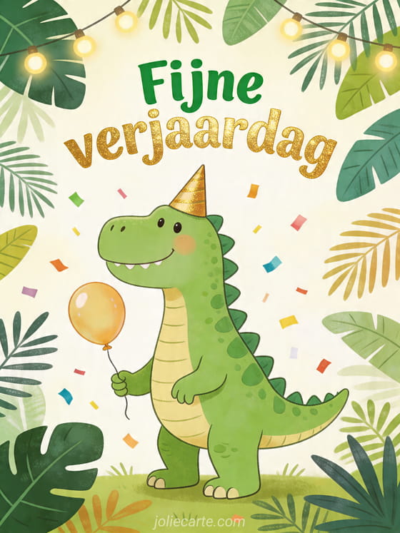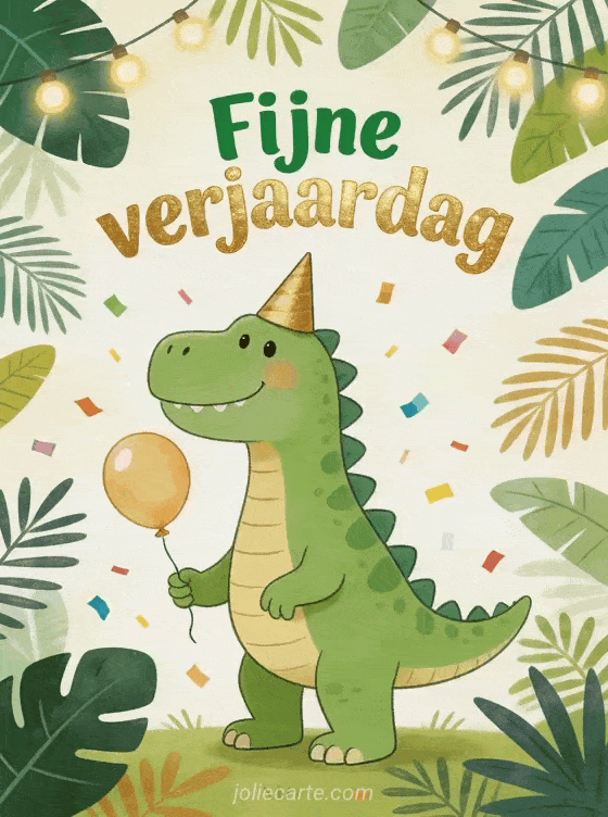 Maak het feest speelser met deze vrolijke verjaardagskaart en haar amusante dinosaurusillustratie. Bekijk ook fijne verjaardag lieve vriendin, gratis fijne verjaardag gif of fijne verjaardag rock n roll.
