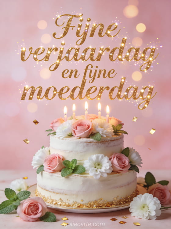 fijne verjaardag en fijne moederdag een feestelijke en vrolijke kaart vol liefde