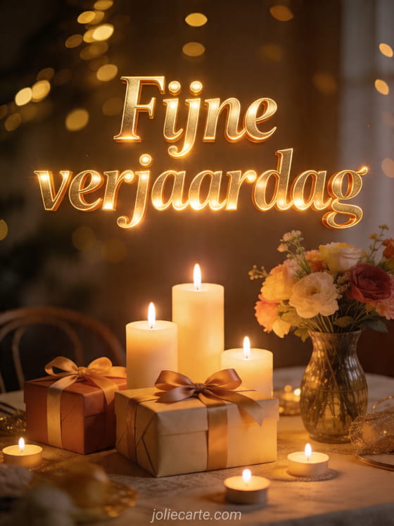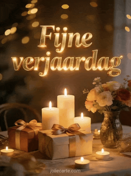 Vier een speciale dag met deze warme en feestelijke verjaardagskaart met kaarsen, bloemen en cadeaus. Bekijk ook fijne verjaardag, verjaardag sms of fijne verjaardag tuinman.