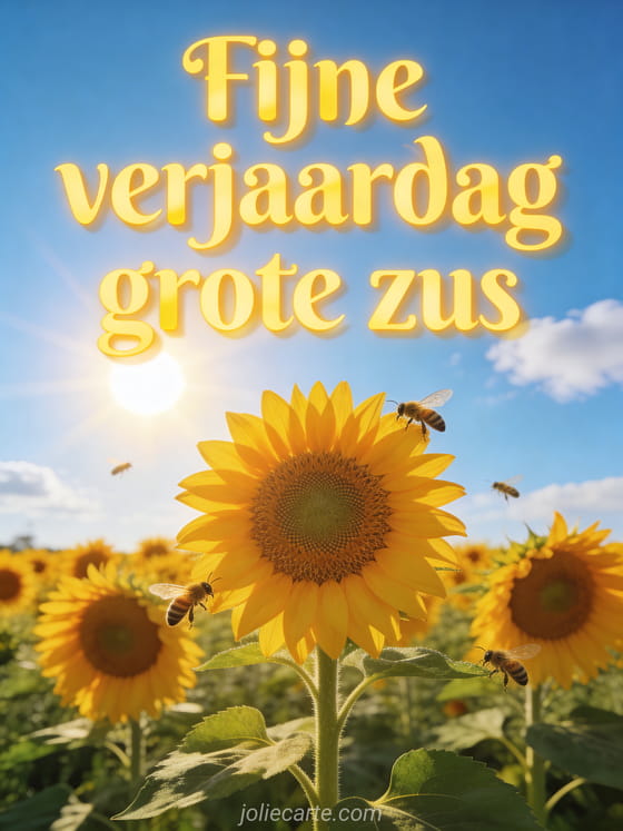 Deel deze vrolijke zomerse verjaardagskaart voor je grote zus en maak haar dag extra zonnig. Ontdek ook verjaardagsbrief zus, gefeliciteerd kleine zus of verjaardagsbericht zus.