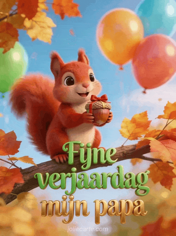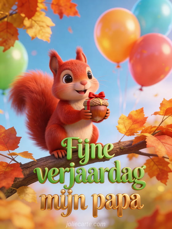 Maak de verjaardag van je papa extra speciaal met een lichte kaart vol herfstkleuren en een lieve eekhoorn. Bekijk ook verjaardag papa sms, fijne verjaardag papa afbeelding of tekening verjaardag papa.