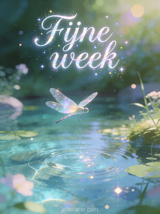 Deel een magische wens voor een fijne week met deze sprookjesachtige libellenkaart. Ontdek ook fijne week allemaal humor, heb een fijne week of grappig fijne week.
