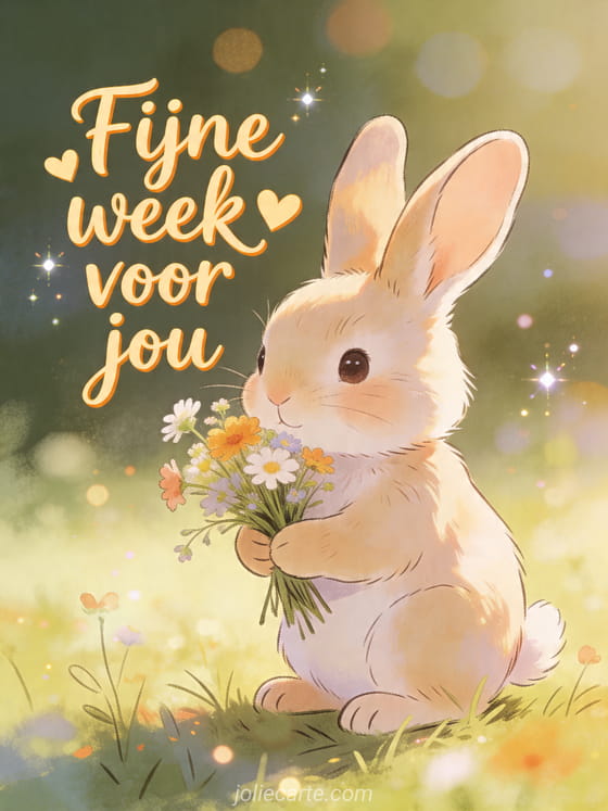 Deel een liefdevolle wens voor een fijne week met deze schattige konijnenkaart. Ontdek ook fijne week kusjes, fijne week afbeeldingen of fijne week kat.