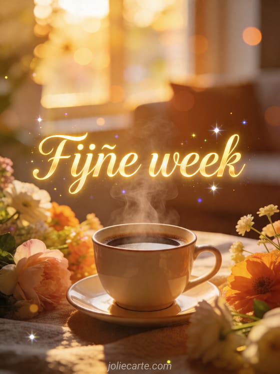 Deel een fijne week met deze gratis kaart en begin de dagen met koffie, bloemen en positieve energie. Ontdek ook fijne week foto, fijne week gifs of afbeelding hallo fijne week.
