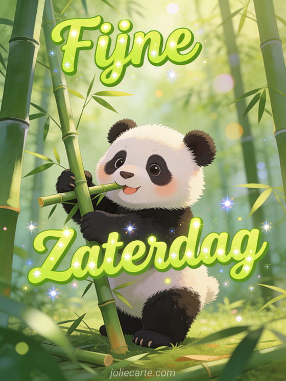 Deel een speelse zaterdaggroet met deze schattige kaart met een pandawelp in een bamboebos. Ontdek ook een goede koffie op zaterdagochtend kaart of een fijne zaterdag mijn vriendin kaart.
