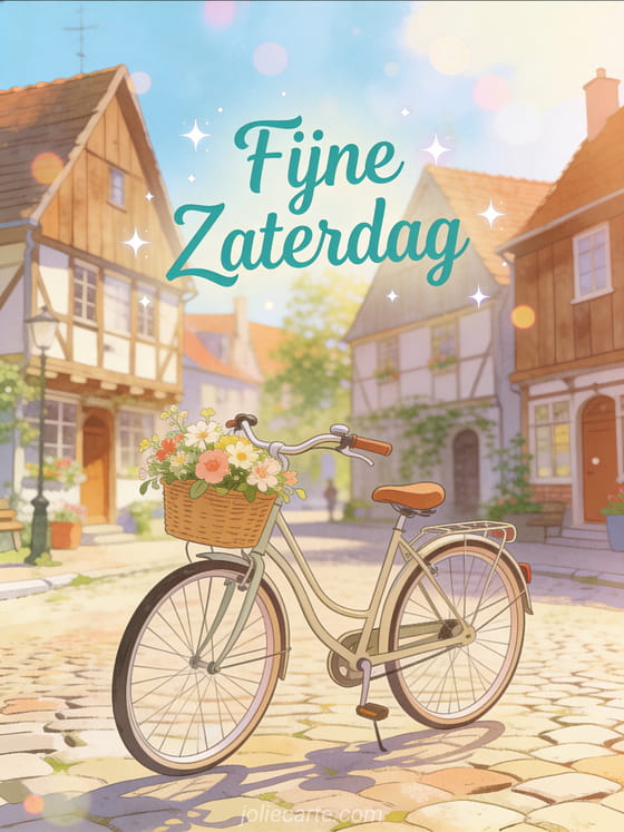 Wens iemand een geweldige zaterdag en weekend met deze charmante vintage fietskaart. Ontdek ook een fijne zaterdag zonnig kusjes kaart of een citaat fijne zaterdag kaart.