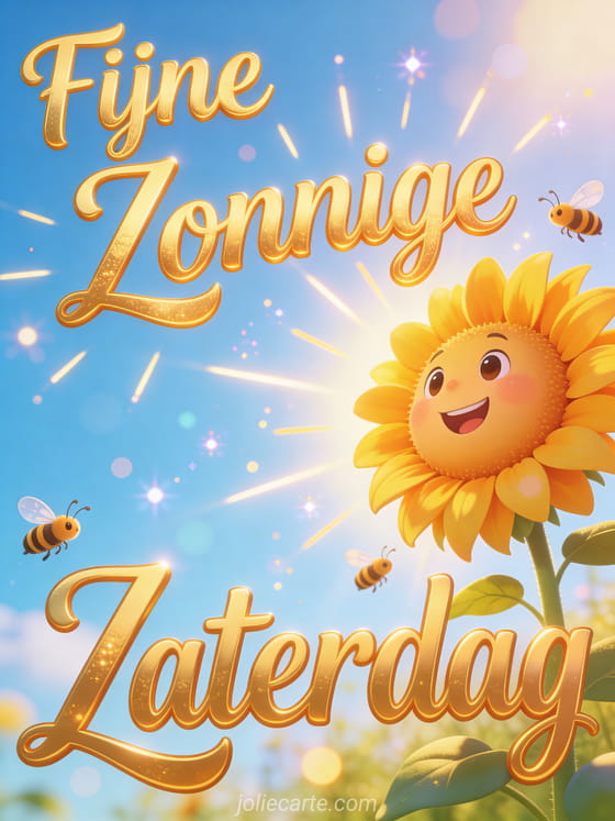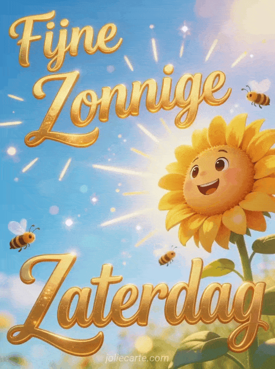 Fijne zaterdag in de zon een stralende zaterdagsgroet met een vrolijke zonnebloem in de zon