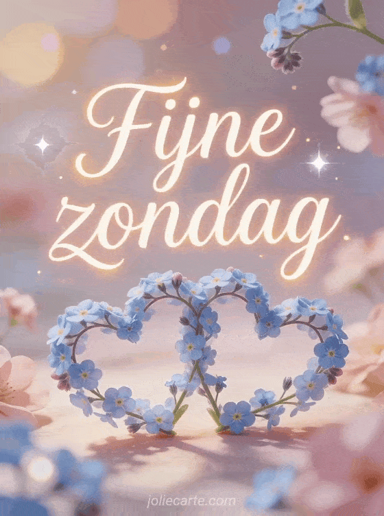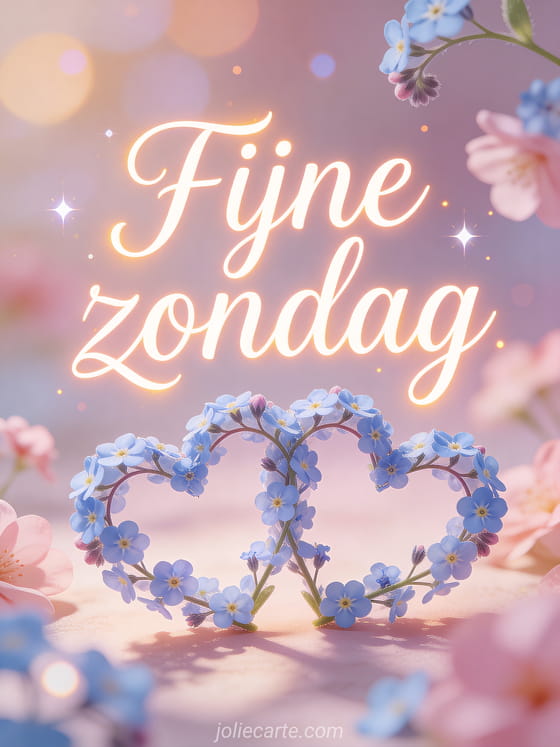 Stuur een liefdevol bericht voor fijne zondag met warme letters en twee verstrengelde harten gemaakt van vergeet-mij-nietjes, vol tederheid en liefde. Ontdek ook goedemorgen fijne zondag, fijne zondag fijne dag of grappige gif fijne zondag.