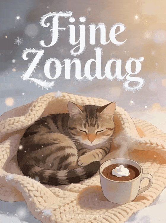 Fijne zondag koud een gezellige winter zondagsgroet met een tijgerkat en warme chocolademelk