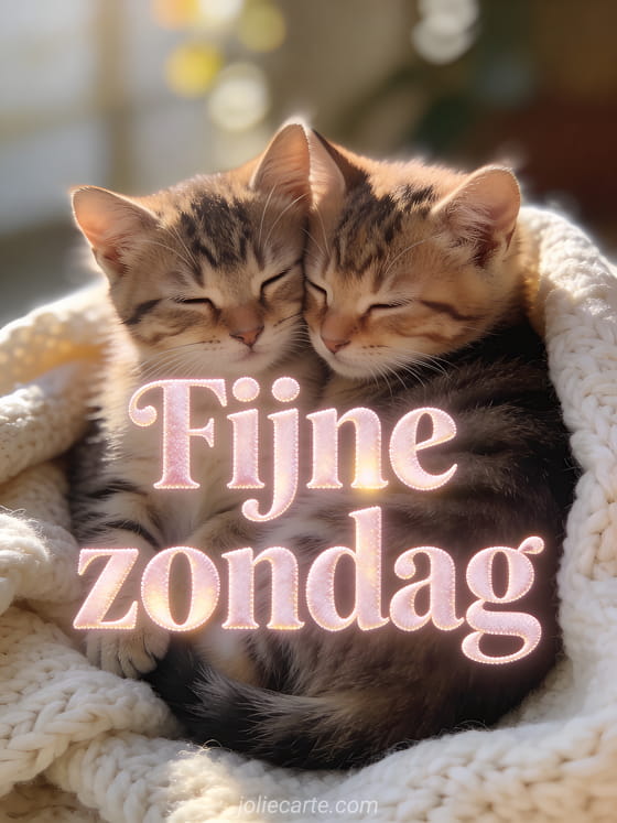 Stuur een tedere gratis kaart voor een fijne zondag met twee schattige kittens die tegen elkaar aanliggen. Ontdek ook fijne dag en fijne zondag, afbeeldingen fijne zondag kusjes of afbeeldingen fijne zondag.