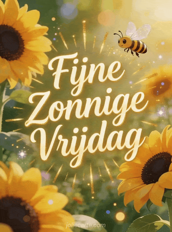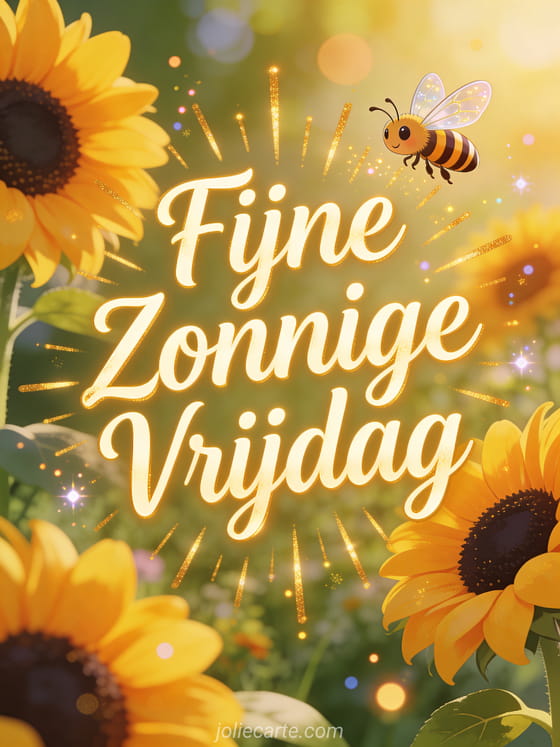 Fijne zonnige vrijdag een vrolijke en lichte groet voor een zonnige vrijdag met zonnebloemen en een bij