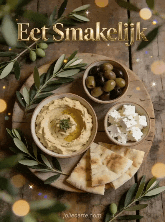 Deel de vreugde van een mooi maal met deze elegante mezze-kaart. Ontdek ook een afbeelding eet smakelijk humor of een gif eet smakelijk.