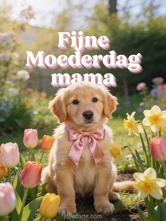 Vier Moederdag met een charmante scène vol tederheid en lentebloemen. Bekijk ook afbeelding moederdag gratis downloaden, bloemenboeket voor moederdag en poëzie voor moederdag.