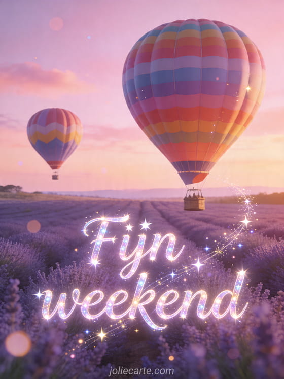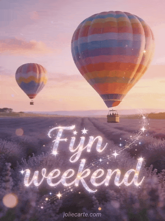 Deel deze dromerige fijn weekend kaart met magische luchtballonnen, lavendelvelden en zacht ochtendlicht. Ontdek ook een fijn weekend, fijn weekend citaat en afbeelding om fijn weekend met humor te wensen.
