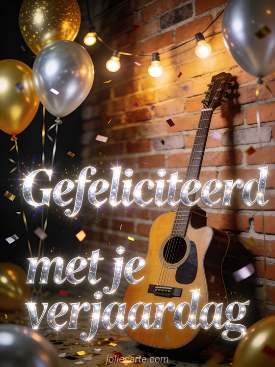 Stuur een krachtige verjaardagsboodschap met deze feestkaart met gitaar als blikvanger. Bekijk ook cybercarte gefeliciteerd papa, vader gefeliciteerd papa verjaardagskaart of gif fijne verjaardag papa.