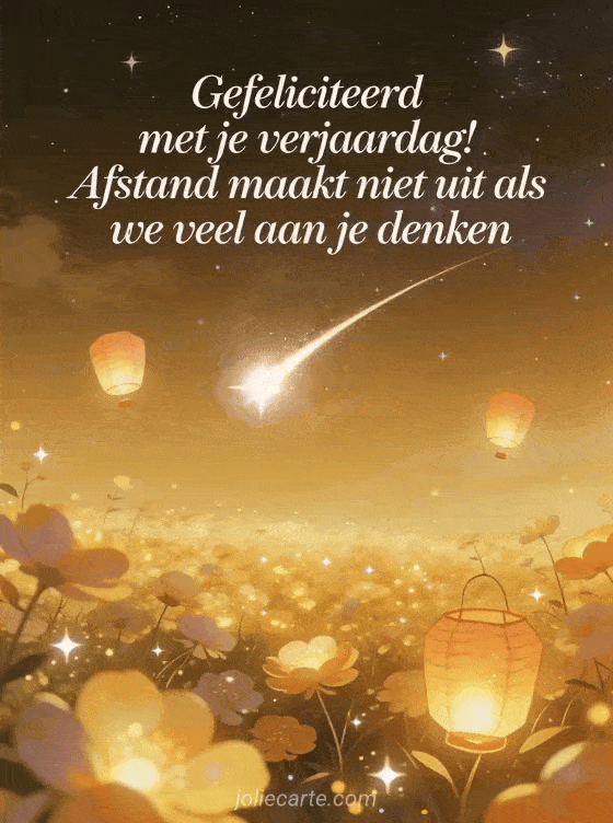Deel een liefdevolle verjaardagswens, ook als er kilometers tussen zitten. Bekijk ook woorden om gefeliciteerd met je verjaardag te wensen, gefeliciteerd met je verjaardag zee of gefeliciteerd met je verjaardag paard.