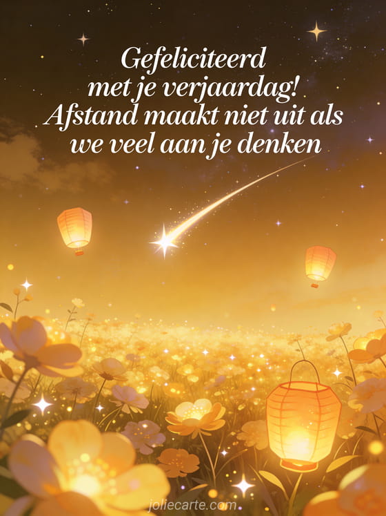 Gefeliciteerd met je verjaardag! Afstand maakt niet uit als we veel aan je denken Een poëtische en warme verjaardagsboodschap om verbonden te blijven.
