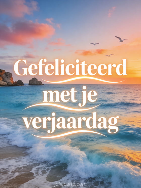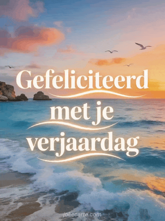 Deel deze rustige verjaardagskaart met zee, zachte golven en gouden licht. Bekijk ook gefeliciteerd met je verjaardag paard, gefeliciteerd met je verjaardag en kat en sms gefeliciteerd met je verjaardag.